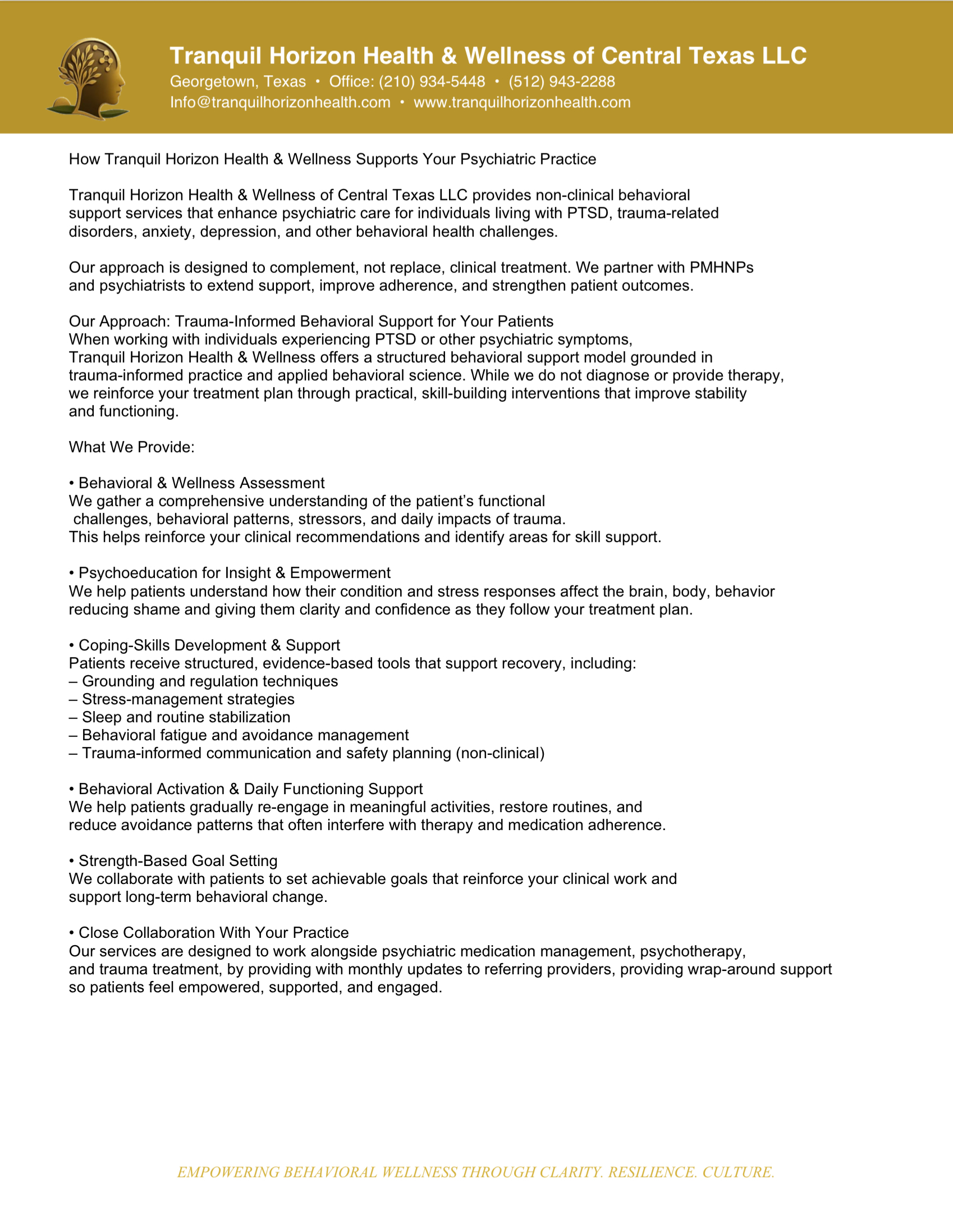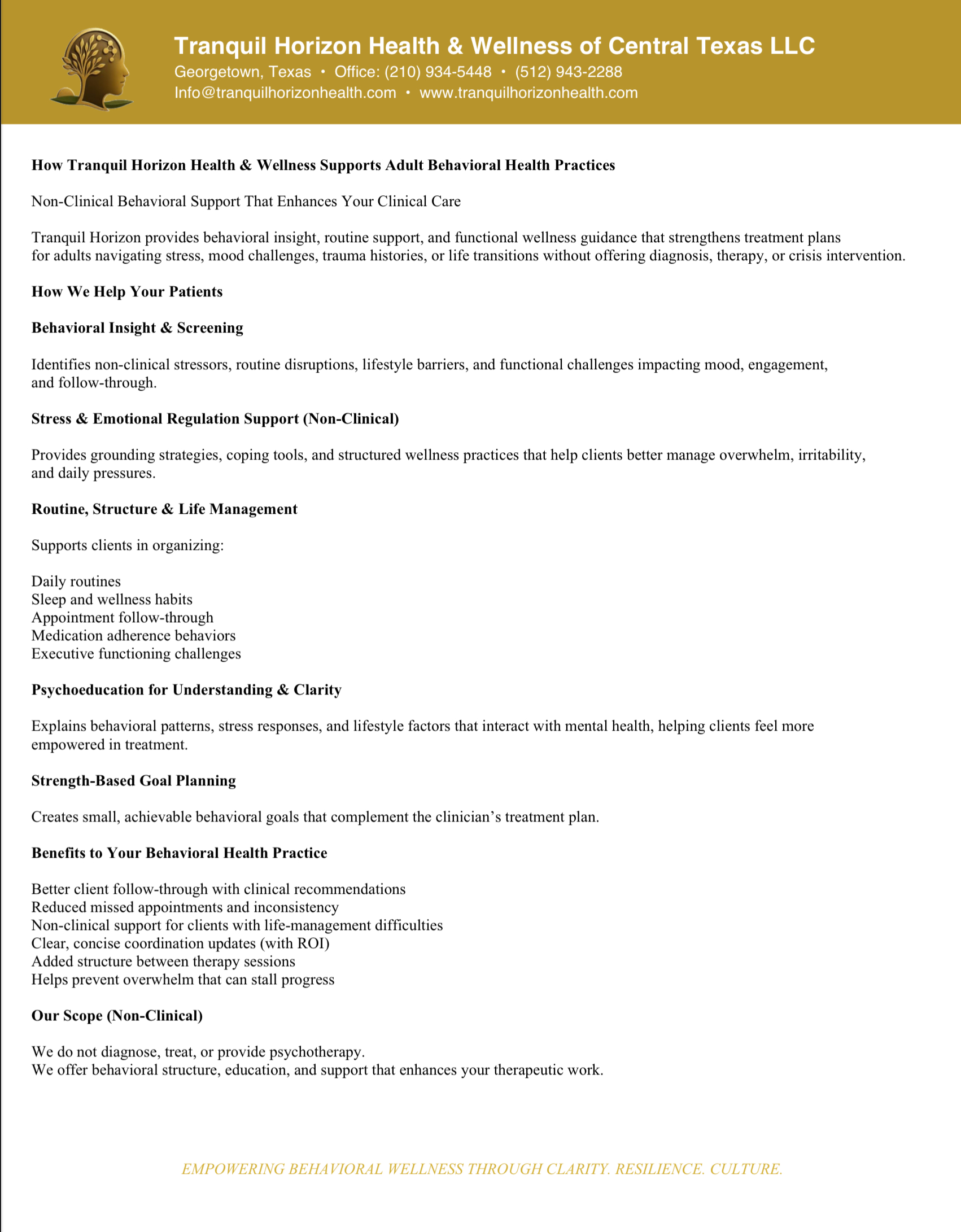 For Adults Behavioral Health & Health Behavioral Wellbeing